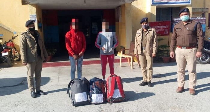 अल्मोड़ा। प्रहलाद नारायण मीणा, वरिष्ठ पुलिस अधीक्षक के निर्देशन में चलाए जा रहे अभियान ’ऑपरेशन नया सवेरा के तहत अवैध रूप से मादक पदार्थों की तस्करी कर रहे तस्करों पर कार्यवाही करने के निर्देश पर 23 दिसंबर 2020 को थाना भतरौजख़ान के उ0नि0 ललित सिंह, कानि0 सतपाल सिंह, म0 का0 किरन, म0 का0 उपासना द्वारा सूचना पर मोहान चेक पोस्ट में चेकिंग के दौरान एक बस जो कि हल्दुखाल, धूमाकोट से रामनगर की ओर जा रही थी की चेकिंग किये जाने पर एक रिया पुत्री पवन कुमार निवासी हजरी धामपुर बिजनोर उत्तर प्रदेश दो अनामिका पुत्री रोहतास निवासी जैत्रा धामपुर बिजनोर उत्तर प्रदेश के पास से तीन बैग में क्रमशः 4.246किलोग्राम, 4.284 किलोग्राम, 4.238किलोग्राम कुल 12.768 किलोग्राम कीमत 51,000 रुपया बरामद कर दोनों को ’गिरफ्तार’ कर थाना भतरौजखान में मु0अ0सं0 30/2020 धारा 08/20 एनडीपीएस अधिनियम के अन्तर्गत अभियोग पंजीकृत कर आवश्यक कार्यवाही की गयी। उ0नि0 ललित सिंह ने बताया कि दोनों से पूछताछ पर बताया ये धूमाकोट से गाँजा खरीदकर काशीपुर व धामपुर बेचने हेतु ले जा रहे थे।