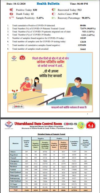 ेदेहरादून जिले में आज हुए 273 संक्रमणों और नैनीताल जिले में 105 संक्रमणों की वजह से राज्य में आज 830 के संक्रमण का आंकड़े तक पहुंच गया है।