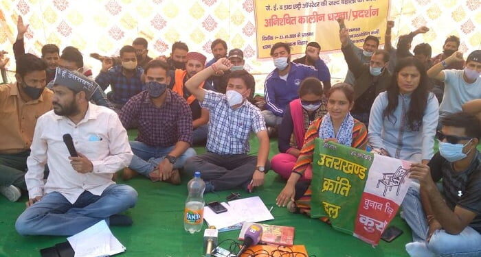 देहरादून। उत्तराखंड क्रांति दल ने पंचायती राज विभाग कर्मचारियों को नौकरी से निकालने पर कड़ा आक्रोश व्यक्त किया है। उत्तराखंड क्रांति दल के कार्यकर्ताओं ने पंचायती राज विभाग के इन कर्मचारियों के समर्थन में आज धरना प्रदर्शन तथा नारेबाजी की।