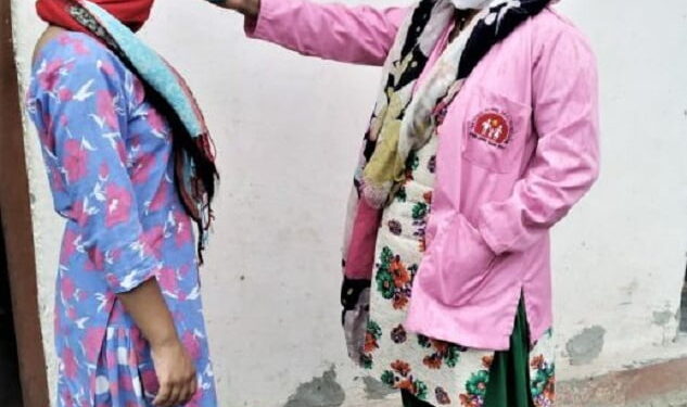 फ़ोटो.. स्वास्थ्य परीक्षण करती आशा कार्यकर्ती।