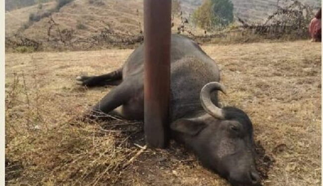 चिन्यालीसौड़। पट्टी दशगी के ग्राम छैजुला में कोटधार से बनगांव जाने वाली 11000 बोल्टेज की बिद्युत लाइन के पोल पर छैजुला निवाशी तेजेन्द्र रावत की भैंस पर करंट लगने से भैंस की मौके पर ही मौत हो गई।