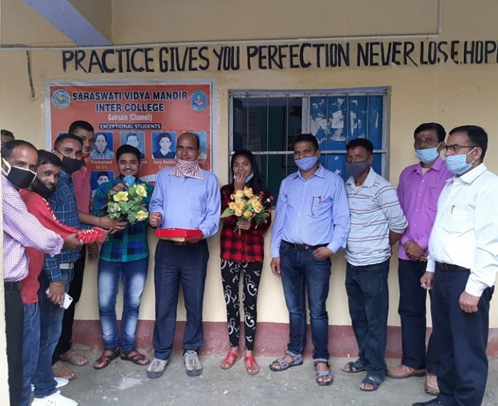 गैरसैंण। सरस्वती विद्यामंदिर इंटर कालेज गैरसैंण से इंटर बोर्ड परीक्षा में सूरज मलेठा ने 91.2 प्रतिशत अंक अर्जित कर प्रदेश स्तर पर 22वॉ स्थान प्राप्त किया है। पिता बासुदेव मलेठा सरकारी विद्यालय में सहायक अध्यापक और माता राखी देवी गृहणी हैं। सूरज का कहना है कि वह आई टी के क्षेत्र में जाकर देश सेवा करना चाहते हैं। इसी विद्यालय की छात्रा गीतांजली रावत ने हाई स्कूल परीक्षा में 95.6 प्रतिशत अंक प्राप्त कर प्रदेश की बरीयता सूची में 13वॉ स्थान पर रह कर मां.बाप, विद्यालय और