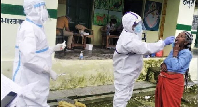 फोटो.कोरोना टेस्टिंग के लिए सेम्पल लेते स्वास्थ्य कर्मी।