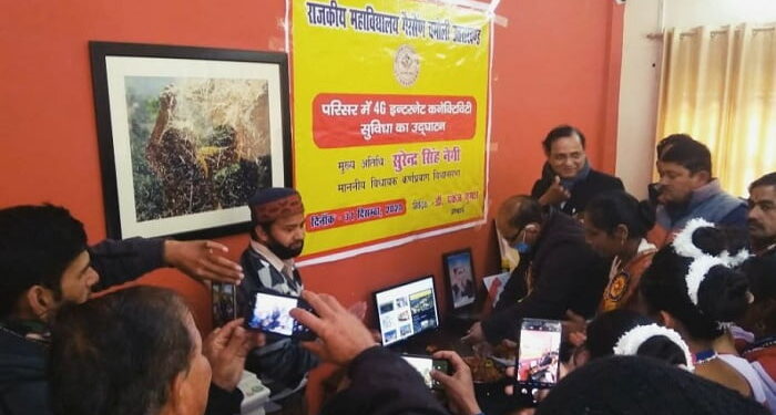 गैरसैंण।बृहस्पतिवार को राजकीय महाविद्यालय गैरसैंण में 4जी इंटरनेट कनेक्टीविटी का शुभारंभ किया गया। इस दौरान मुख्य अतिथि रहे क्षेत्रीय विधायक सुरेंद्र नेगी ने कॉलेज में विधायक निधि से दी गई 6 लाख की निधि से खरीदी गई पुस्तकों का महाविद्यालय के पुस्तकालय में विमोचन किया गया। साथ ही प्राचार्य डॉण् पंकज कुमार ने विधायक को पूरे परिसर का भ्रमण करा कर निर्माण कार्यों का अवलोकन कराया।