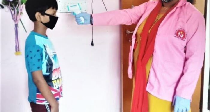फोटो..कोरोना संक्रमण की जाँच करती आशा।