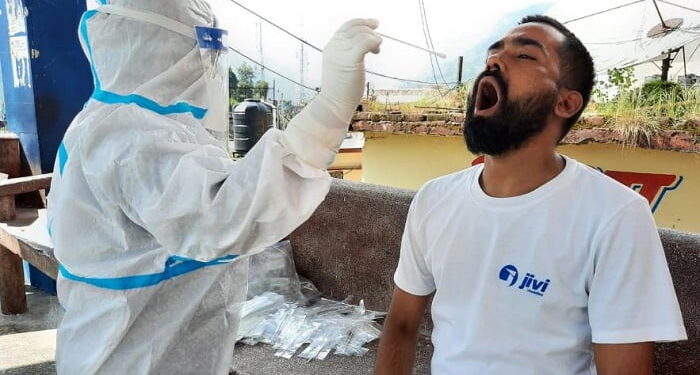 फोटो..कोविड टेस्टिंग के लिए सेंपल लेते स्वास्थ्य कर्मी।