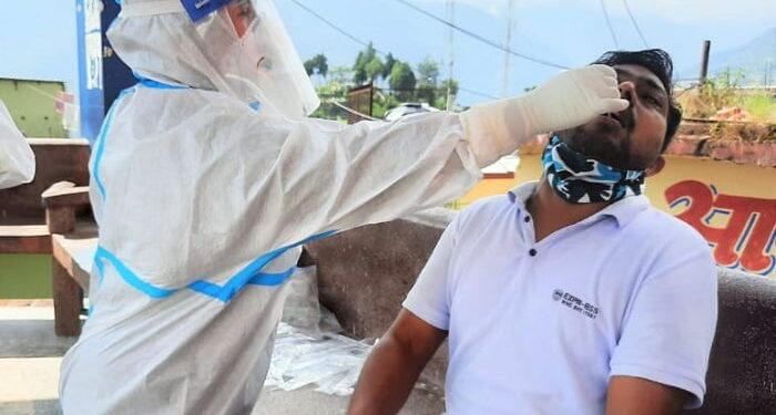 फोटो..कोरोना संक्रमण की जाँच करते स्वास्थ्य कर्मी।