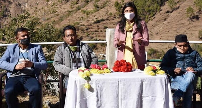 फोटो..निजमुला घाटी मे एडवेंचर फाउंडेशन कोर्स मे सम्मलित युवाओं को संबोधित करती डी एम भदौरिया।
