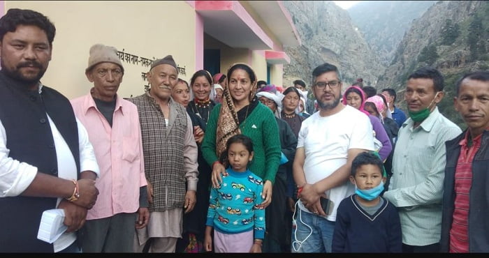 जोशीमठ। जिला पंचायत अध्यक्ष श्रीमती रजनी भण्डारी जी ने विकासखण्ड जोशीमठ के जिला पंचायत ढाक वार्ड के सीमान्त सीमावर्ती गांव नीती, गमशाली, बाम्पा, फरकिया, कैलाशपुर, मेहरगाव, मलारी, कोषा, झेलम, जुमा, तमक आदि दूरस्थ गांवों में जाकर ग्रामीणों की समस्याओं को सुनते हुए, ग्रामीणों को कोविड.19 वैश्विक महामारी बीमारी से बचने के लिए सुरक्षित व सावधानियां बरतने के सुझाव देते हुए महिला मंगल दलों को मास्क, थर्मामीटर मशीन;थर्मल स्क्रीनिंग मशीन, दवाई छिडकाव की स्प्रे मशीनें, फिनाइल, बिलिचिंग पाउडर, छिडकाव दवाईया का वितरण किया गया।