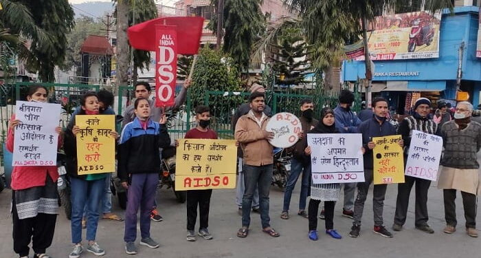 श्रीनगर। दिल्ली में चल रहे किसान आंदोलन के समर्थन में डीएसओ छात्र संगठन द्वारा श्रीनगर शहर में किसानों के लिए न्यूनतम समर्थन मूल्य की मांग को लेकर जनगीतों की रैली निकाली गई।