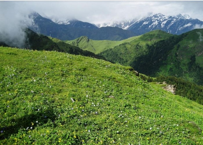 - रूपकुंड ट्रैक पर पड़ने वाले मखमली बुग्याल।
