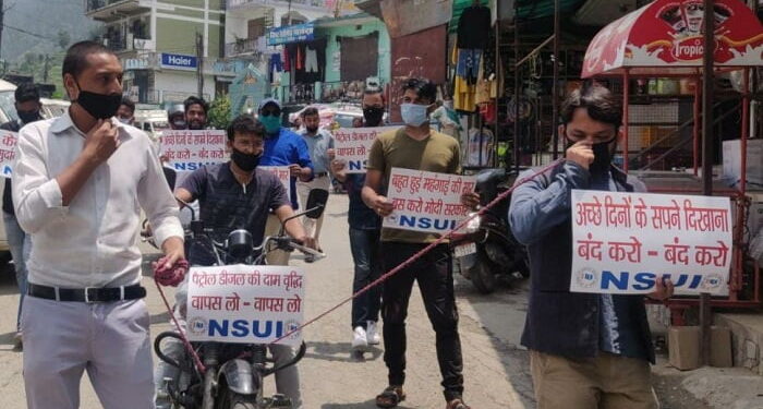 इस दौरान एनएसयूआई के अध्यक्ष मोहन भंडारी ने कहा कि कोरोना महामारी के संकट काल में जिस प्रकार बसों में यात्रा किराया दुगने से अधिक किया गया और साथ ही डीजल, पैट्रोल के दामों में बेतहासा बृद्धि कर आम जनता पर दोहरी मार की है जिसका उनका संगठन पुरजोर विरोध करता है। उन्होंने पॉच मार्च 2020 के बाद डीजल पैट्रोल के दामों व उत्पाद शुल्क में की गई सभी बढ़ोतरी को तत्काल वापस किये जाने की मांग की है। इस दौरान दानसिंह नेगी, विपुल गौड़, राकेश उप्रेती, गौराव कुमार, मोनू, सूरज कुमार विजय, अनिल नेगी, देवेंद्र बिष्ट, अजय मनोड़ी, मयंक गौड़, अनिल सती आदि मौजूद रहे।