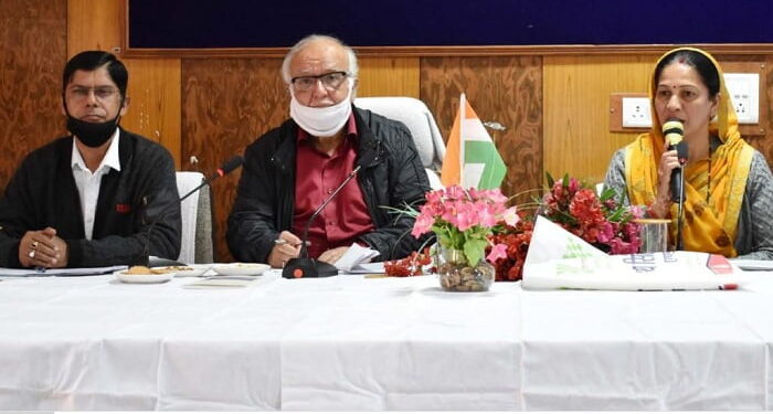 फोटो.राज्य वित्त आयोग के अध्यक्ष श्री पाण्डे बैठक लेते हुए।