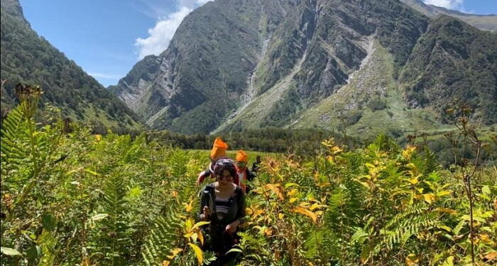 फोटो- विश्वधरोहर फूलों की घाटी मे विचरण करते पर्यटक ।