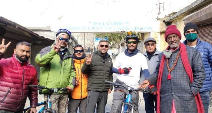 फोटो- देश के अंतिम गाॅव माणा से साइकिल यात्रा का शुभांरभ करते हुए ।