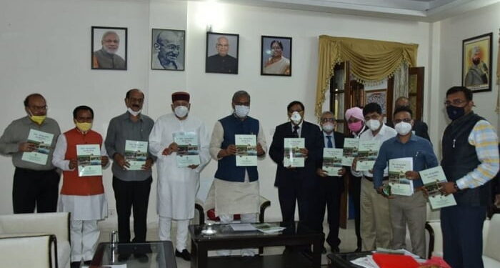 देहरादून। मुख्यमंत्री श्री त्रिवेन्द्र सिंह रावत की अध्यक्षता में बुधवार को मुख्यमंत्री आवास में राष्ट्रीय कृषि और ग्रामीण विकास बैंक (नाबार्ड) द्वारा राज्य के विकास में विभिन्न वित्तीय एवं विकासात्मक सहयोग से संचालित योजनाओं के क्रियान्वयन के सम्बन्ध में बैठक आयोजित हुई। बैठक में नाबार्ड के चेयरमैन डाॅ0 जी0आर0 चिंतला, सिंचाई मंत्री श्री सतपाल महाराज, कृषि मंत्री श्री सुबोध उनियाल, सहकारिता मंत्री डाॅ0 धन सिंह रावत के साथ ही मुख्य सचिव श्री ओम प्रकाश उपस्थित थे। इस अवसर पर नाबार्ड द्वारा प्रकाशित पैक्स-एक बहुउद्देशीय सेवा केन्द्र योजना मार्गदर्शिका का भी विमोचन किया गया।