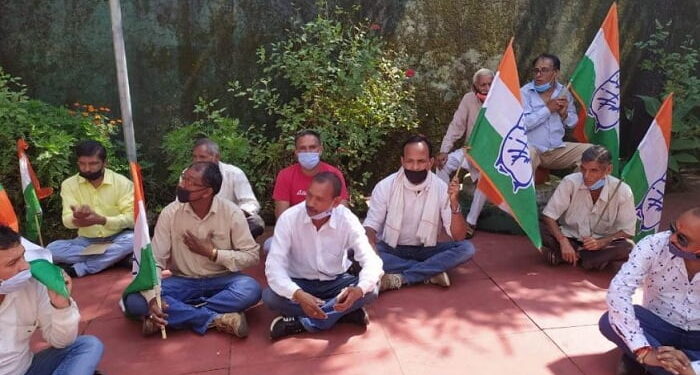 फोटो- अवैध खनन व पेडो के कटान के खिलाफ धरना देते कांग्रेसजन ।