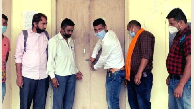 गैरसैंण। शनिवार को तीसरे दिन भी प्रधान संगठन में ब्लॉक कार्यालय में किया तालाबंदी। जल जीवन मिशन के तहत हर घर नल हर घर जल योजना का कार्य ग्राम पंचायतों के माध्यम से कराये जाने की मांग और मनरेगा में कार्यदिवस बढ़ाने, मनरेगा का ऑडिट निजि संस्थाओं के माध्यम से न कराये जाने और प्रधानों का मानदेय बढ़ाये जाने की मांग को लेकर तालाबंदी की गई।