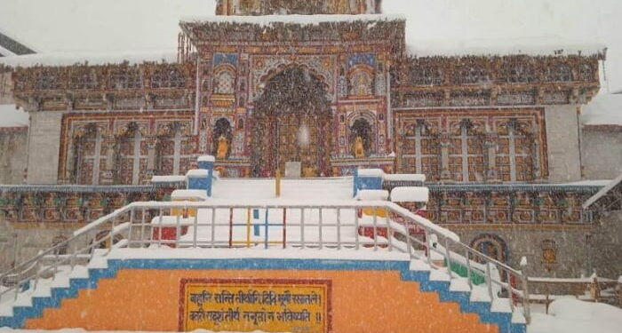 फोटो- श्री बदरीनाथ धाम में हुए ताजे हिमपात का दृष्य ।