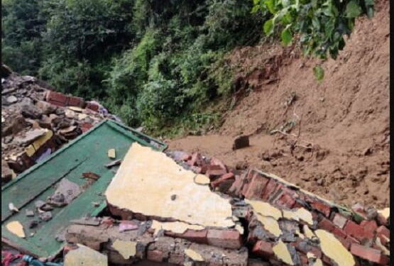 फ़ोटो..पोखरी ब्लॉक मे बादल फटने की घटना के बाद जमीदोंज हुआ मकान