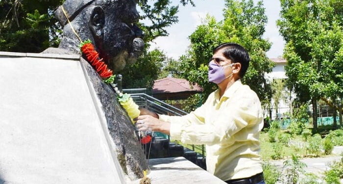 फोटो-पंडित गोविंद बल्लभ पंत की प्रतिमा पर माल्यार्पण करते सी डी ओ पाण्डे।