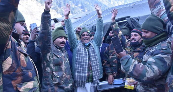 हर्षिल/कोपांग (उत्तरकाशी)। मुख्यमंत्री त्रिवेन्द्र सिंह रावत ने आईटीबीपी कैम्प कोपांग उत्तरकाशी में आईटीबीपी के जवानों एवं हर्षिल उत्तरकाशी में 9वीं बटालियन बिहार रेजिमेंट के सेना के जवानों के साथ दीपावली मनाई। इस अवसर पर मुख्यमंत्री ने जवानों का हौंसला बढ़ाया एवं जवानों व उनके परिवारजनों को दीपावली की शुभकामनाएं दी। जवानों ने मुख्यमंत्री को अपने बीच पाकर प्रसन्नता व्यक्त की और कहा कि इससे कार्य करने का जज्बा और होंसला बढ़ता है।