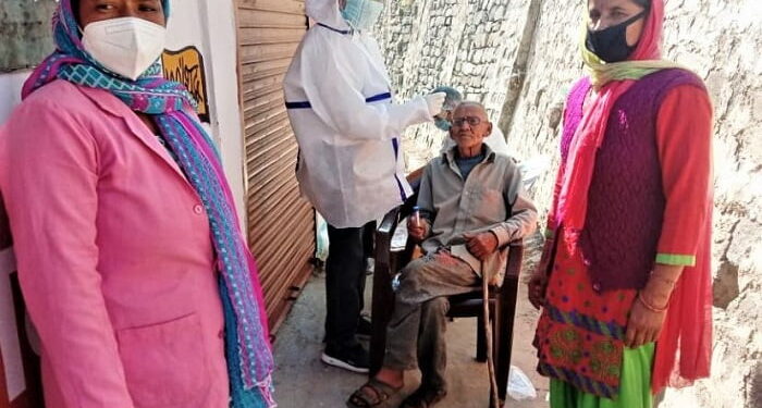 फोटो.कोविड संक्रमण की जाँच करते हुए।