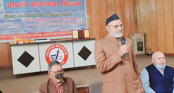 उत्तराखंड राज्य स्थापना दिवस पर उत्तराखंड पूर्व सैनिक अर्ध सैनिक संयुक्त संगठन द्वारा आयोजित विचार गोष्ठी आयोजित की गयी । इस अवसर पर श्री लाखी राम जोशी पूर्व मंत्री, श्री सुरेंद्र पांगती पूर्व कमिशनर गढ़वाल, श्रीमती रंजना रावत, ब्रिगेडियर विनोद पासबोला, श्री प्रकाश थपलियाल और श्री रघुबीर बिष्ट मौजूद रहे ।