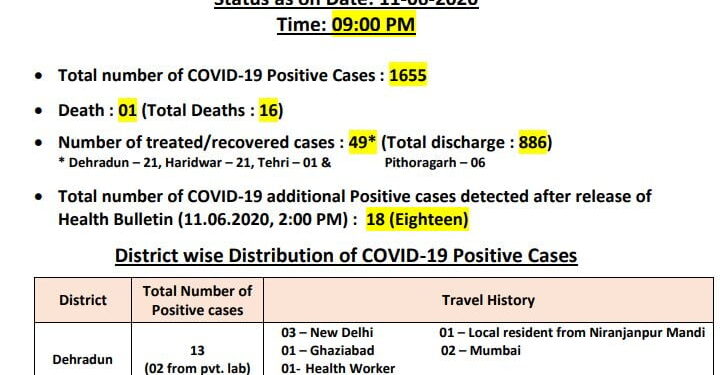 इस तरह राज्य में कोरोना संक्रमितों की संख्या 1655 हो गई है। आज एक कोरोना संक्रमित की मौत हुई, राज्य में कुल 16 मौत हुई है। आज 49 लोग कोरोना से मुक्त होकर अस्पताल से घर पहुंचे।