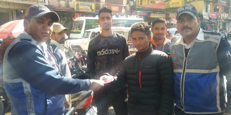 आज दिनांक 22.02.2019 को मुख्य बाजार रुद्रप्रयाग में यातायात ड्यूटी में नियुक्त आरक्षी दर्शन सिंह व आरक्षी कैलाश कुंवर को ₹ 4000 सड़क पर पड़े मिले। पुलिस सहायता केन्द्र पर लगे पीए सिस्टम की मदद से एनाउंसमेंट किया गया।
