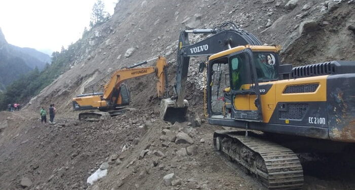 फोटो–लामबगड स्लाइड जोन पर दोनों तरफ से लगी मशीनों ने सुबह मार्ग आवाजाही के लिए खोला गया।