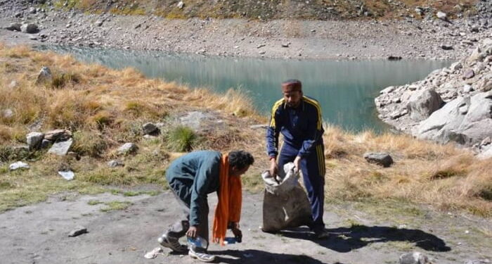फोटो- सतोपंथ झील व आस-पास कूडा उठाते हुए।