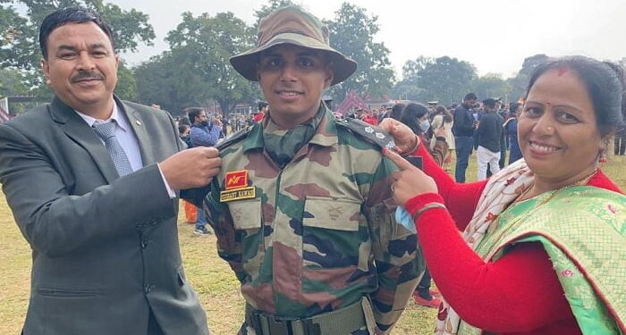 जोशीमठ। जोशीमठ के सुशांत कवांण बने सेना में अधिकारी। शनिवार को पासिंग आउट परेड के दौरान माता-पिता ने सुशांत के कंधों पर स्टार अलंकृत किए।