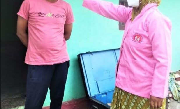फ़ोटो. कोरोना संक्रमण की जाँच करती आशा कार्यकर्ती।