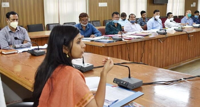 फ़ोटो..जनपद मे संचालित बिभिन्न विकाश योजनाओं की समीक्षा करती डी एम।