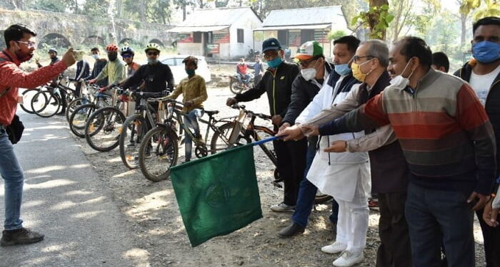 हल्द्वानी, बसानी। उत्तराखण्ड मुक्त विश्वविद्यालय द्वारा कोविड.19 को लेकर जागरूकता कार्यक्रम के तहत फतेहपुर बावनडाठ से बसानी तक साईकिल रैली निकाली गयी। जिसके द्वारा हिट इंडिया, फिट इंडिया का संदेश भी दिया गया। रैली को दर्जा मंत्री गजराज बिष्ट व यूओयू के कुलसचिव प्रो. गोविन्द सिंह द्वारा हरी झंडी दिखाकर रवाना किया गया।