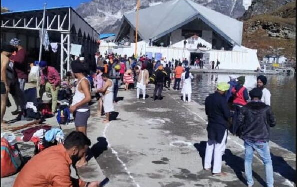 फोटो- इस वर्ष की अंतिम अरदास मे शामिल होने के लिए हेमकुंड सािहब पंहुचे श्रद्धालु ।