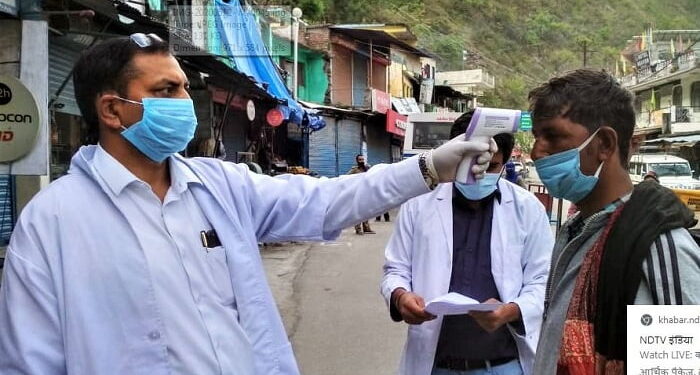 बाहरी राज्यों के मजदूरों को भेजने से पूर्व मेडिकल चेकअप करते हुए।