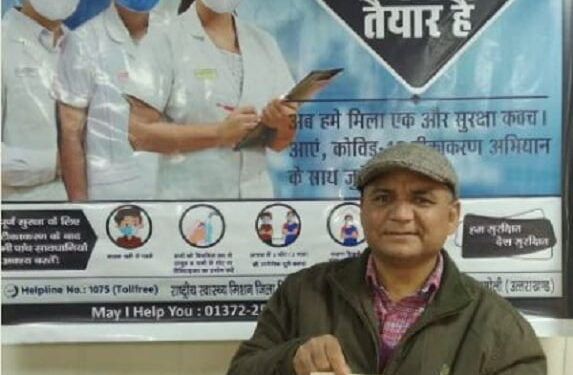 फोटो.कोरोना वेक्सीन के प्रति लोगों को जागरूक करते सी एम ओ चमोली डॉ राणा।