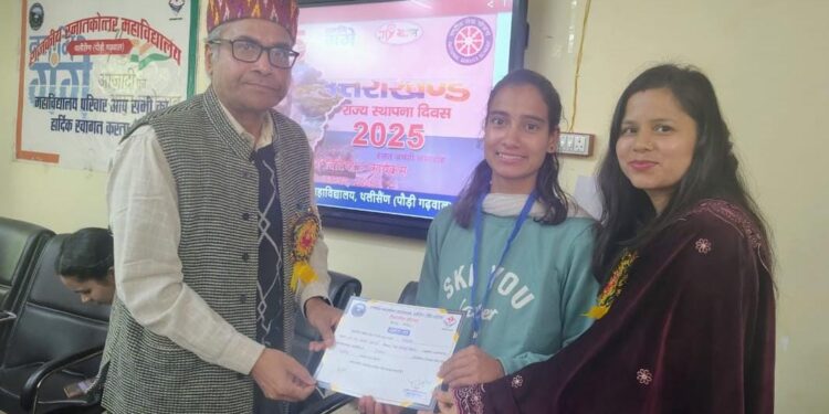 गढ़वाल। राज्य स्थापना दिवस की रजत जयंती के अवसर पर राजकीय स्नातकोत्तर महाविद्यालय थलीसैंण में “बेटी बचाओ, बेटी पढ़ाओ” योजना के तहत “अफसर बिटिया” कार्यक्रम का आयोजन किया गया। कार्यक्रम का शुभारंभ महाविद्यालय के प्राचार्य योगेन्द्र चन्द्र सिंह एवं बाल विकास परियोजना अधिकारी थलीसैंण पूजा रावत द्वारा दीप प्रज्ज्वलन के साथ किया गया।