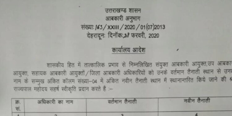 उत्तराखंड आबकारी विभाग में शासन ने बड़ा फेरबदल किया है। विभाग के 14 अफसरों को इधर से उधर किया गया है। देखिये पूरी लिस्ट-