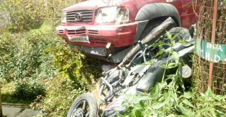 चमोली जिला मुख्यालय गोपेश्वर में सीतापुर नेत्र चिकित्सालय के पास अग्निशमन विभाग के टाटा वाहन की मोटरसाईकल में भिड़ंत हो गई। दुघर्टना के दौरान बाइक सवार सड़क से नीचे खाई की तरफ जा गिरा।