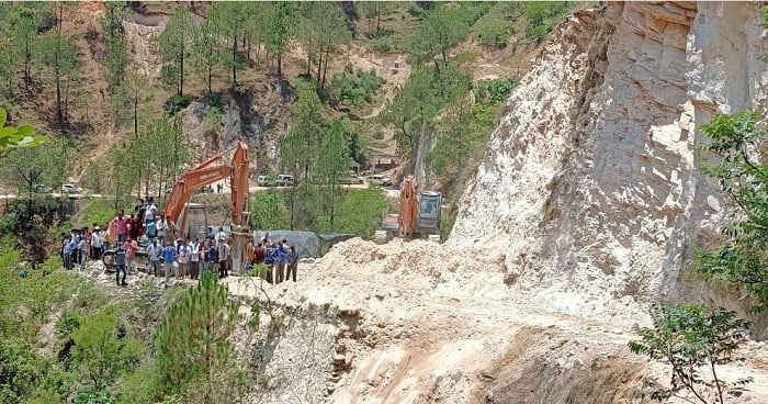 सोमवार को सुबह लगभग 10ः40 बजे नारायणबगड.परखाल मोटर मार्ग पर बिजौरीगाड़ नामक स्थान पर सड़क चौडीकरण का कार्य चल रहा था। जिस कारण सड़क पर जाम लगा हुआ था। इस दौरान कुछ लोग सड़क किनारे बैठे थे। अचानक उपर से पहाड़ का मलबा गिरने के कारण दो लोग इसकी चपेट में आ गए। जिसमें ग्राम डुंग्री निवासी नरेश लाल पुत्र कमल लाल तथा ग्राम चौपता निवासी मुकेश रावत पुत्र अर्जुन सिंह रावत मलबे के साथ सड़क से नीचे खाई में गिर गए। दोनों व्यक्तियों को खाई से रेस्क्यू किया गया। मलबे में दबने के कारण मुकेश रावत पुत्र अर्जुन सिंह रावत उम्र 28 वर्ष की मौके पर ही मृत्यु हो गई जबकि नरेश लाल पुत्र कमल लाल उम्र 44 वर्ष गंभीर रूप से घायल हुआ है। जिसे उपचार के लिए सामुदायिक स्वास्थ्य केन्द्र रूद्रप्रयाग के लिए रेफर किया गया है।