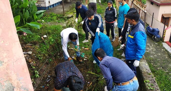 अल्मोड़ा। जिला प्रशासन व नगरपालिका द्वारा विशेष सफाई अभियान के अन्तर्गत आज नगर पालिका क्षेत्र के रामशिला वार्ड के कचहरी परिसर, तहसील परिसर, नयालखोला, हुक्का क्लब, पीडब्लूडी कालोनी, बागी बगीचा एवं मल्ला दन्या में समस्त विभागों के अधिकारियों/कर्मचारियों एवं गणमान्य नागरिकों द्वारा विशेष स्वच्छता अभियान चलाया गया। स्वच्छता अभियान में नगरपालिका अध्यक्ष, जिलाधिकारी के अलावा वार्ड सभासद और विभिन्न जनपद स्तरीय अधिकारी कर्मचारी व जनप्रतिनिधि उपस्थित थे। इन स्थानों में स्वच्छता अभियान के तहत पालिका के कूडा वाहनों के द्वारा कूड़ा एवं मिटटी, मलुवा, घास तथा कांच आदि को हटाया गया और सफाई की गयी।