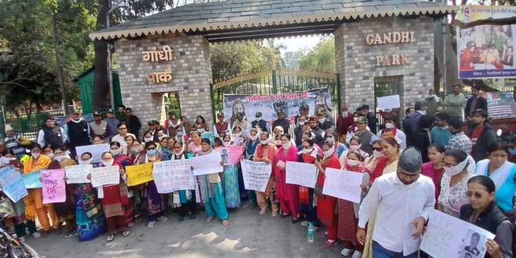 आज “अंकिता न्याय संयुक्त संघर्ष मंच” से जुड़ी महिलाओं , युवाओं , पूर्व सैनिक संगठन के कार्य कर्ताओं एवं अन्य विभिन्न संगठनों के प्रतिनिधियों ने अंकिता न्याय यात्रा संयुक्त संघर्ष मंच के बैनर तले गांधी पार्क से राज भवन तक 200 से अधिक लोगों ने राज्यपाल के अलोकतांत्रिक असंवैधानिक कार्य व्यवहार के विरोध में एक मौन मार्च निकाला I मंच नेत्री कमला पंत ने बताया कि यह मौन मार्च पूर्व प्रस्तावित था ,इसके माध्यम से अंकिता को न्याय के मुद्दे पर सरकार के रवैये को लेकर मात्र जन जागरण करना चाहते थे l उन्होंने कहा कि हमारा उद्देश्य राज्यपाल से जैसे भी वे चाहें उनसे मात्र 5 – 6 सदस्यीय प्रतिनिधि मंडल मिलकर उनको जन भावना को बताते हुए उनके माध्यम से राष्ट्रपति को ज्ञापन भिजवाना मात्र था I इसके लिए उनके वहां 3 बार फोन किया गया और मंच की ओर से ब्रिगेडियर सर्वेश dangwal के द्वारा 2 ईमेल भेजकर भी इस हेतु अनुरोध भेजा गया परंतु राज्यपाल महोदय ने कोई उत्तर तक नही दिया गया, राज्यपाल के ऐसे अलोकतांत्रिक – असंवैधानिक रवैये के विरोध में ही तब यह मार्च राजभवन तक के लिए निकालने का निर्णय संयुक्त संघर्ष मंच ने लिया l काफी पहले ही जहां पुलिस द्वारा रोका गया ,तब वहां से भी मात्र 5 लोगों के प्रतिनिधि मंडल को बुलवा कर ज्ञापन लेने की गुहार लगाई गई परंतु राज्यपाल महोदय ने इसकी भी अनुमति नहीं दी l जब राज्य सरकार कुछ नही सुनती या करती है तो लोग राज्य अध्यक्ष से मिलकर अपनी बात उनके सामने रखना चाहते हैं l यह किसी भी नागरिक या संगठन का लोकतांत्रिक अधिकार है I