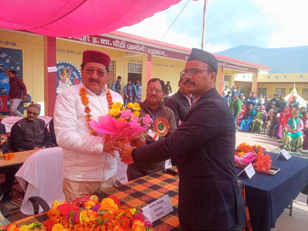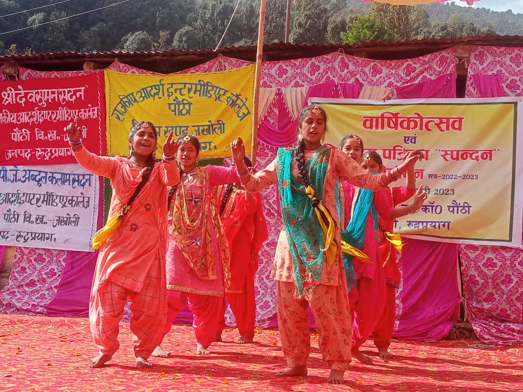 रुद्रप्रयाग : जनपद रुद्रप्रयाग विकासखंड जखोली के आदर्श इंटर कॉलेज पौठी में वार्षिकोत्सव कार्यक्रम को धूमधाम से मनाया गया।वार्षिकोत्सव कार्यक्रम मुख्य अतिथि के रूप में विधायक भरत सिंह चौधरी कार्यक्रम अध्यक्ष जिला पंचायत अध्यक्ष अमरदेई शाह के द्वारा प्रतिभाग किया।इस अवसर पर सभी अतिथियों द्वारा विद्यालय पत्रिका “स्पन्दन” का विमोचन किया गया।विद्यालय के प्रधानाचार्य विनयदीप पैन्युली द्वारा अतिथियों का धन्यवाद ज्ञापित करते हुए,विद्यालय की प्रगति रिपोर्ट से अवगत कराया साथ ही विद्यालय की विभिन्न समस्याओं के साथ ही विद्यालय में कक्षा-कक्षाओं की मांग की गई।वही कार्यक्रम में विशिष्ट अतिथि के रूप में उपस्थित मुख्य शिक्षा अधिकारी विनोद सेमल्टी द्वारा छात्र-छात्राओं को आने वाले बोर्ड परीक्षाओं तैयारियों को लेकर चर्चा की।एवं परीक्षाओं के लिए मेहनत करने के बच्चों को प्रेरित किया।
