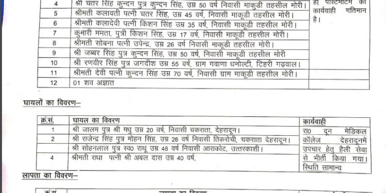 आराकोट आपदाः मृतकों की संख्या 12 हुई, एक की नहीं हो पाई शिनाख्त