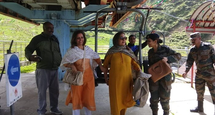 जोशीमठ। थलसेनाध्यक्ष जनरल विपिन रावत की धर्मपत्नी मधुलिका रावत ने किया औली का दीदार। जोशीमठ से रोप-वे के जरिये औली पहुंची श्रीमती रावत।