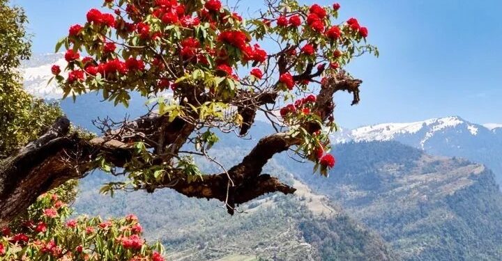 वसंत में खिलने वाला बुरांश उत्तराखंड के जनमानस में गहराई से समाया हुआ है। पांच हजार फीट की ऊंचाई से जीवन शुरू करने वाले बुरांश की उत्तराखंड में पांच प्रजातियां पाई जाती हैं। अधिकतर लोग जानते हैं कि बुरांश सिर्फ लाल रंग का ही होता है। लेकिन सच यह है कि बुरांश का फूल सफेद, गुलाबी, पीला और नीला भी होता है। सदियों से लोकगीतों में अपना स्थान बना चुका बुरांश वर्तमान में उत्तराखंड का राज्य वृक्ष भी है। उत्तराखंड के साथ ही पड़ोसी राज्य हिमाचल, सुदूर पूर्वोत्तर के सिक्किम और पड़ोसी देश नेपाल में भी बुरांश पाया जाता है। सिक्किम में बुरांश की सर्वाधिक 45 से 50 प्रजातियां पाई जाती हैं। बुरांश का वैज्ञानिक नाम रोडोडेंड्रोन है। उत्तराखंड में यह मार्च में खिलना शुरू हो जाता था । कुदरत हमें कदम-कदम पर चौंकाती है। इस बार अल्मोड़ा के रानीखेत में भी कुदरत का अनोखा करिश्मा देखने को मिला है। यहां दुर्लभ सफेद बुरांश के फूल खिले हैं। बुरांश उत्तराखंड का राज्य पुष्प है। पहाड़ों में लाल बुरांश बहुतायत में खिलते हैं, लेकिन सफेद बुरांश के दर्शन बेहद दुर्लभ हैं। क्योंकि ये आमतौर पर उच्च हिमालयी क्षेत्रों में ही खिलता है।इस बार रानीखेत के देवीढूंगा मिश्रित वनक्षेत्र में सफेद बुरांश की छटा बिखर रही है। खास बात ये है कि इस अद्भुत प्रजाति के इकलौते पेड़ पर डेढ़ दशक बाद सफेद फूल आभा बिखेर रहे हैं। इस तरह 15 साल के इंतजार के बाद कहीं जाकर यहां सफेद बुरांश देखने को मिले हैं। कुछ वनस्पति विशेषज्ञ इसे अस्थायी बदलाव तो कुछ उच्च हिमालय जैसी ठंड व नमी को अहम वजह मान रहे हैं। राज्य पुष्प बुरांश की सफेद दुर्लभ प्रजाति 2900 से 3500 मीटर की ऊंचाई पर ही पाई जाती है। कुमाऊं की बात करें तो ये पिथौरागढ़ के खलियाटॉप क्षेत्र में खूब खिलते हैं, लेकिन समुद्रतल से महज 1860 मीटर की ऊंचाई पर अगर सुर्ख लाल बुरांश वाले जंगल के बीच सफेद फूल वाला पेड़ दिखे तो हैरानी होना स्वाभाविक है।इस दुर्लभ पेड़ की देखरेख होमफार्म निवासी प्रकृति प्रेमी कर रहे हैं। वह बताते हैं कि पेड़ को बचाने के लिए इसे मां दुर्गा को समर्पित कर दिया गया है। सफेद बुरांश की यह प्रजाति रोडोड्रेंड्रॉन कैंपेनुलेटम है। 15 साल बाद इस पर एक बार फिर सफेद फूल खिले हैं। बता दें कि तीन साल पहले जोशीमठ के सेलंग गांव स्थित जंगल में भी सफेद बुरांश खिला था। तब विशेषज्ञों ने तर्क दिया था कि वनस्पति प्रजातियों में पहली व दूसरी पीढ़ी में मॉफरेलॉजिकल बदलाव आ जाता है। अनुवांशिक गुणों में परिवर्तन भी इसका बड़ा कारण हो सकता है।बहरहाल शिवालिक रेंज में एल्पाइन जोन की इस अनूठी प्रजाति ने नए सिरे से शोध के द्वार खोले हैं। वन अनुसंधान केंद्र कालिका ने भी अध्ययन कर इसके संरक्षण की कवायद तेज कर