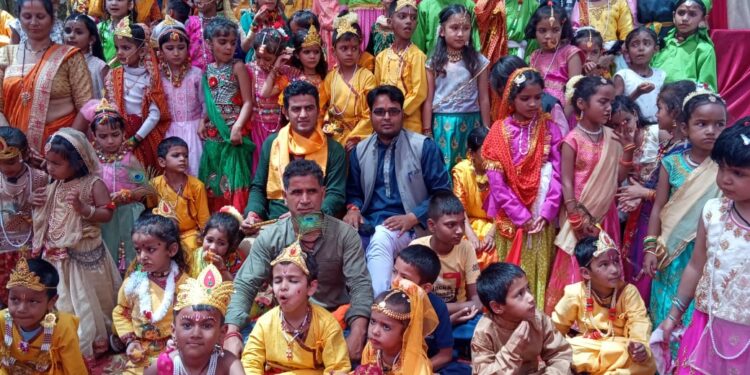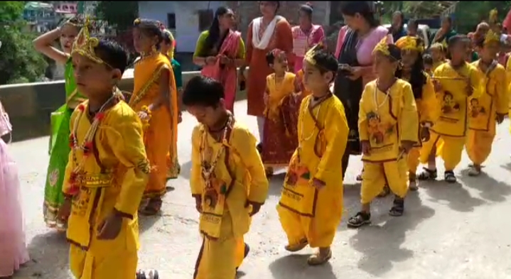सरस्वती शिशु मंदिर के छात्रों ने रामलीला मैदान स्थित विद्यालय से राधा कृष्ण की झांकी निकाली जो मुख्य मार्केट होते हुए एसबीआई मार्केट तक गई इस के बाद झांकी वापस लौट पड़ी।इस दौरान स्कूली बच्चे श्रीकृष्ण और राधा की वेशभूषा में झांकी में सम्लित हुए।जोकि खासे आकृषण का केंद्र बने रहें। झांकी निकालने के दौरान भक्त राधा कृष्ण के भजनों को गाते एवं झूमते हुए चल रहें थे। इसके बाद रामलीला मैदान में एक भजन कीर्तन का कार्यक्रम आयोजित किया गया। जिसमें एक से बढ़कर एक भजन कीर्तन प्रस्तुत किए।